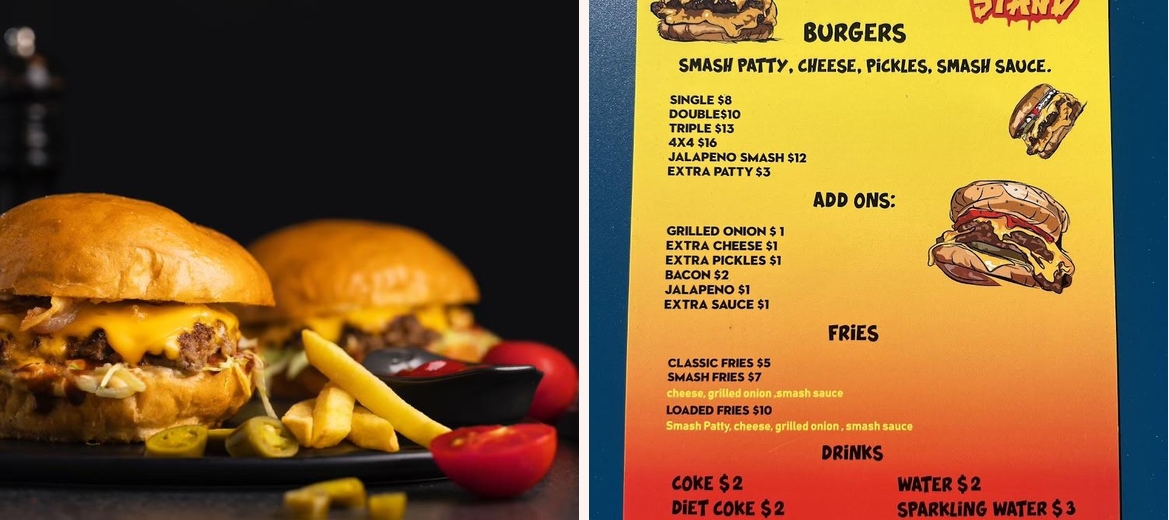 The menu at The Smash Stand is straightforward yet tantalizing. It primarily revolves around their smash burgers, known for their unique blend of flavor and texture. Burger lovers can choose from the single, double, and triple beef patty options, each crafted to satisfy any hunger pang. The standout, the jalapeño smash, brings a delightful kick that pairs wonderfully with the house-made sauces. Don't skip the house seasoned French fries, which are a perfect sidekick to any burger choice. Burgers range from around $13 to $21 for combos, providing good value for quality food. The drink options complement the menu well, ensuring a complete meal. With a total of 12 plates offered, patrons have enough variety to keep coming back for new flavors or a comforting classic.